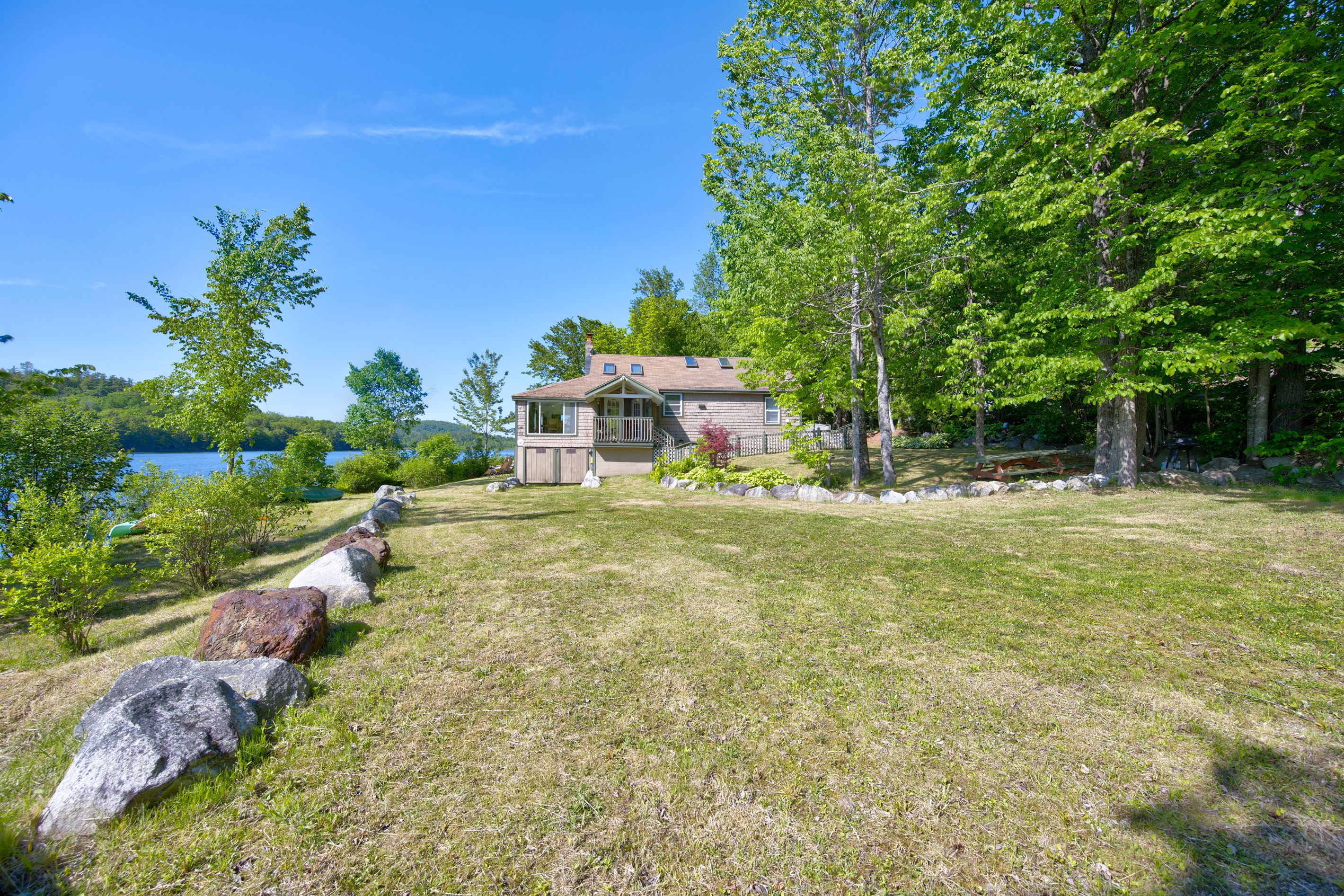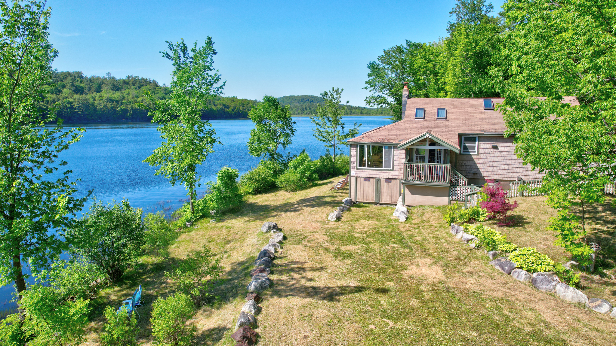 Gorgeous 180 degree vistas of Long Pond with floor to ceiling picturesque windows and 6 skylights! This lovely cottage sits 35’ feet from water's-edge and sleeps 4. Swim, have a fire or just relax inside while watching the Long Pond wildlife from all angles. Day trip to Bar Harbor, Acadia National Park, Blue Hill, Belfast and more along the coast of Maine. Incredible views from windows and skylights give you the feeling of being outdoors while enjoying any kind of weather during your stay! Dining or relaxing on the interior gives one a sense of being in a houseboat or on a cruise ship, or even feel as if you are outdoors, yes, it’s that close to the water’s edge!