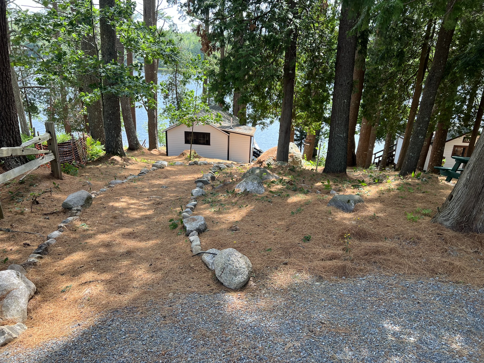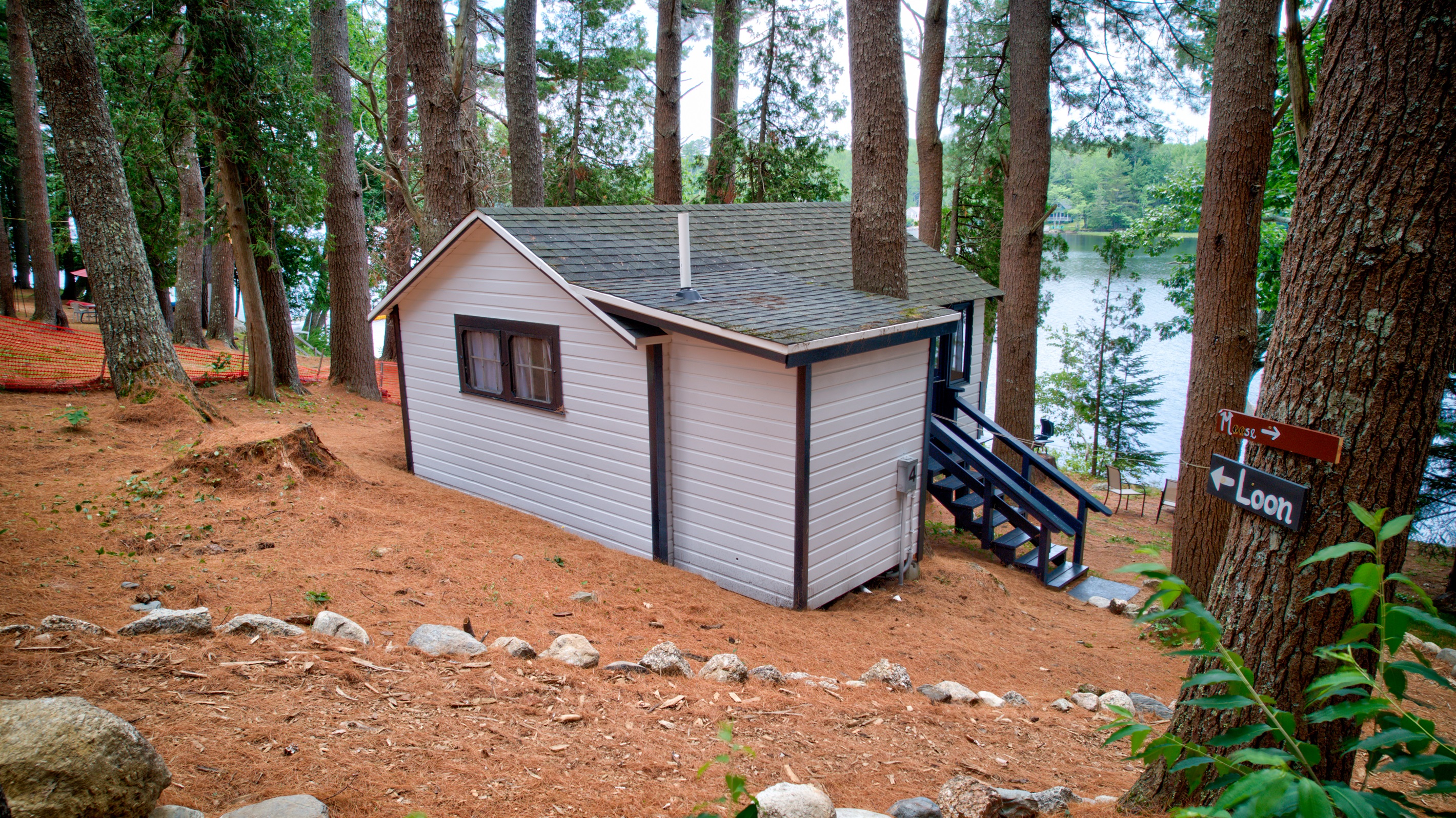 PARKING: There is a large, shared gravel driveway. One vehicle is permitted for the Loon cabin. Parking is not directly next to the cabin. There is a spot to park and unload 50 feet from the cabin. From there, vehicles are moved to the parking lot, which is about 100 feet away. It is a steep hill down to the cabin from the unloading spot