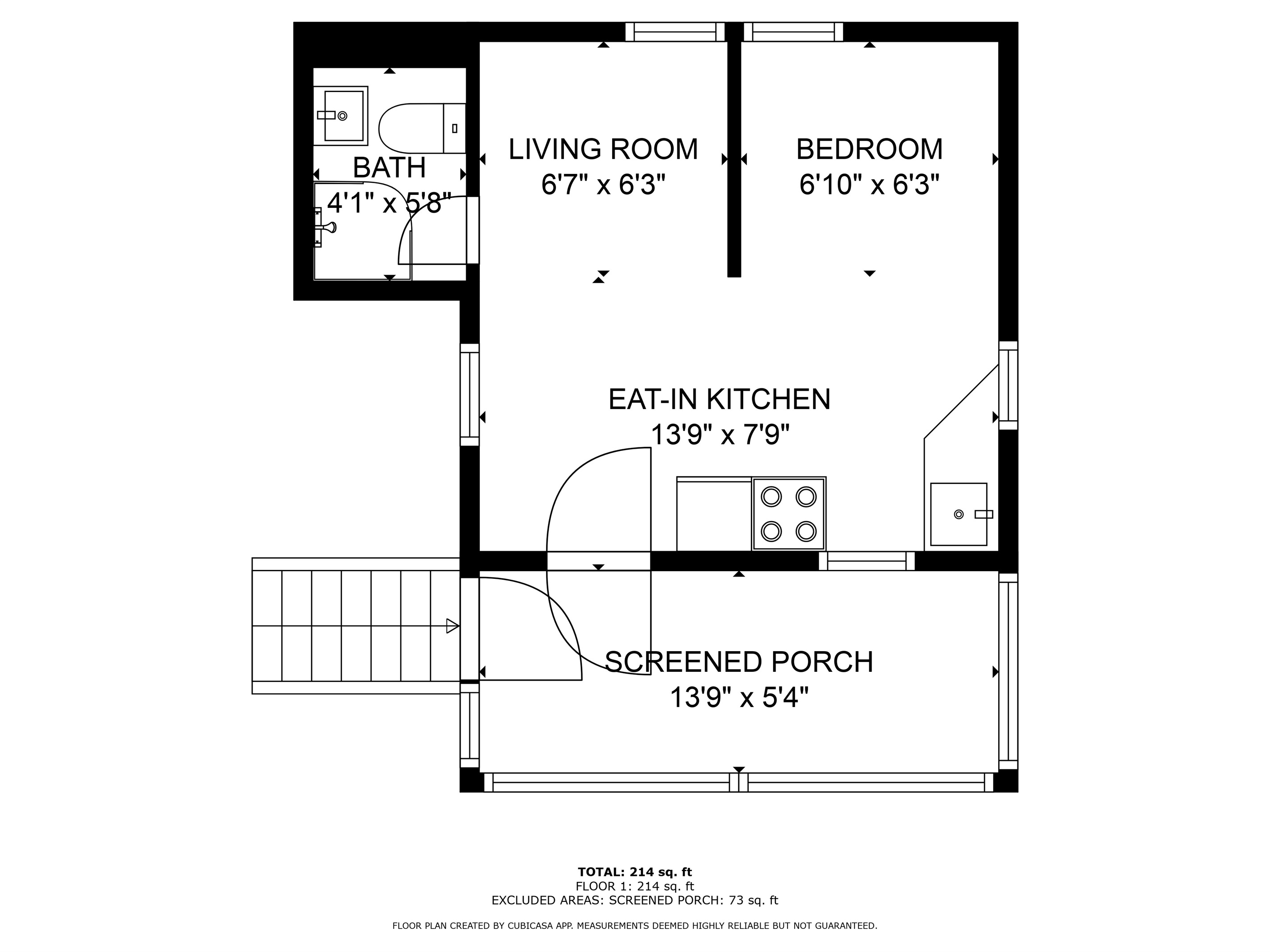 This tiny cabin is 14x14ft wide and has one main room, a bathroom, a screened-in porch, and a yard. On one side, there is a King-size and futon. A kitchenette and a small dining area with two chairs are on the other wall of the cabin. There is an attached and fully remodeled bathroom. The bathroom is small but equipped! Brand-new stand-up shower, toilet, and vanity. Out the front door is a marvelous screened porch with another dining table. Outside is a 6 ft picnic table, a fire pit, a gas grill, and plenty of Adirondack chairs for your group.