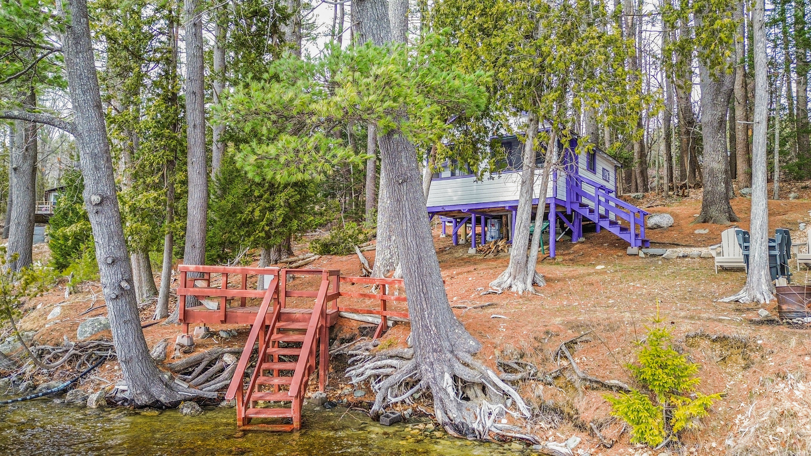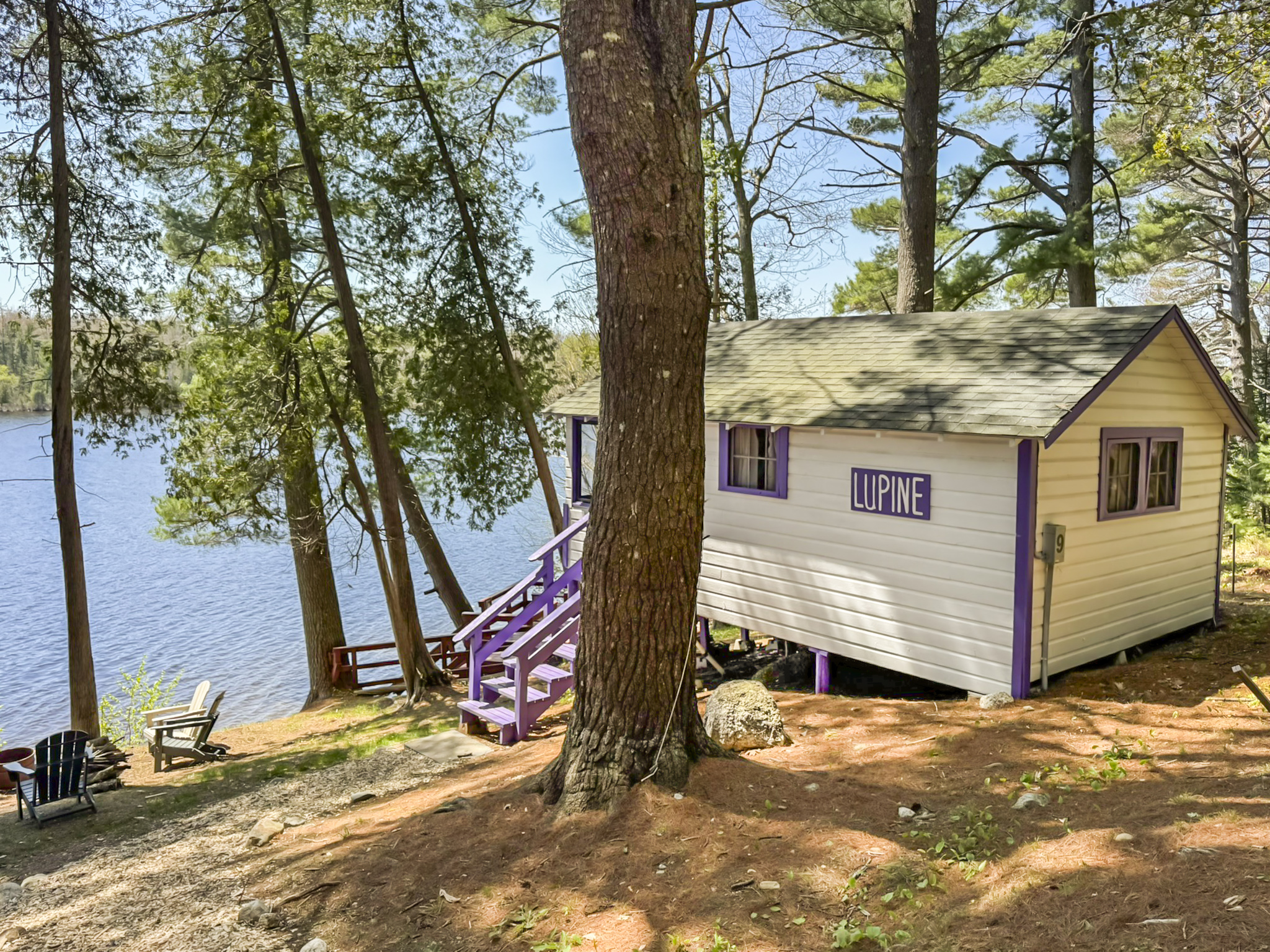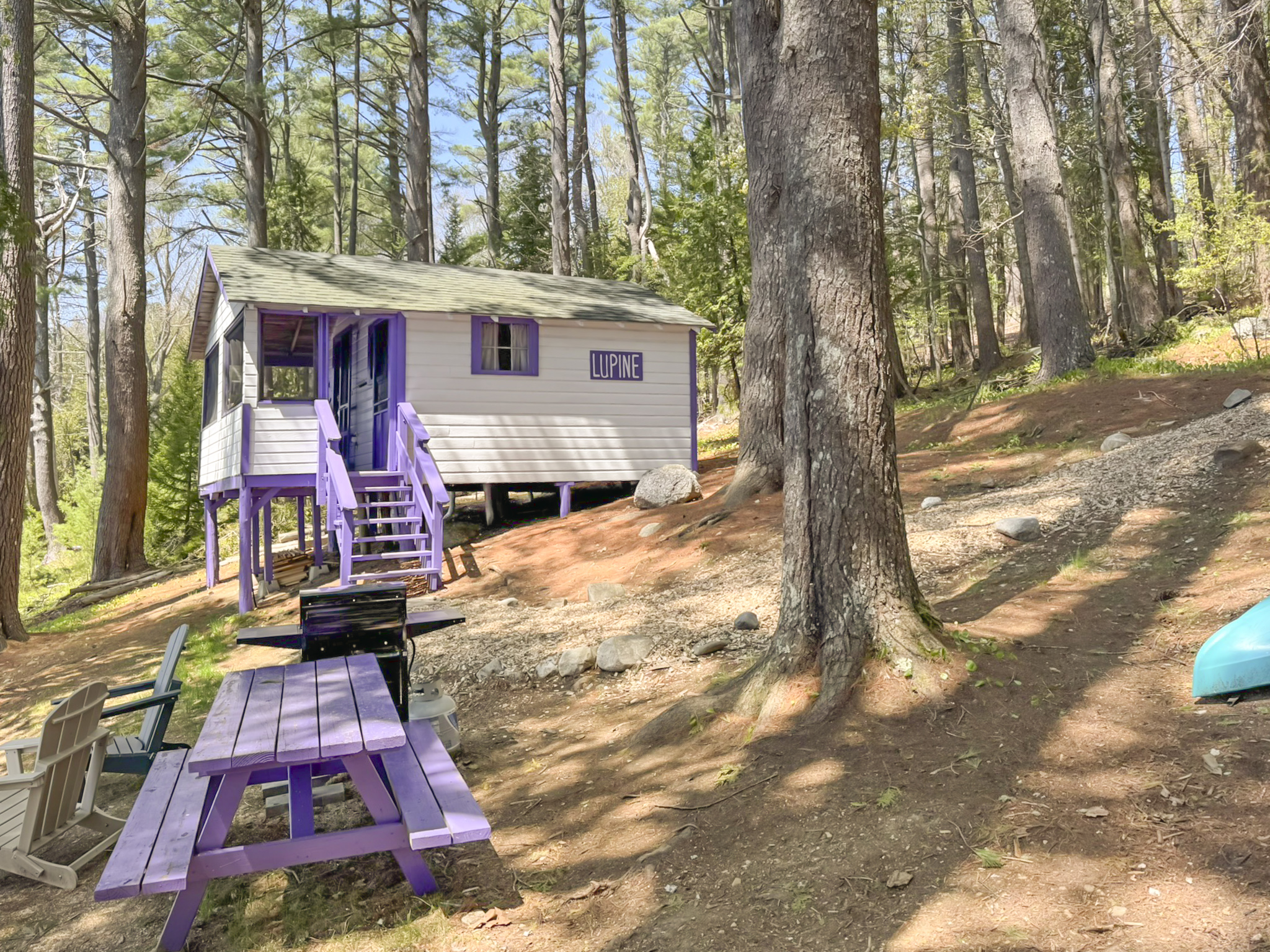 This newly remodeled Maine & Lupine themed tiny cabin is nestled among the tall pine tree shoreline of Toddy Pond. The cabin is located in the waterfront row of cabins, as seen on the map in the listing images. You will love this Lupine themed tiny cabin! Tucked away in a 9-cabin resort on the beautiful gravel shores of Toddy Pond, you’ll have the opportunity to swim and kayak in the crystal-clear water, relax at the shady picnic tables beneath the towering pine trees, view local wildlife, enjoy at-home necessities, and easily access nearby towns! This is truly a special and unforgettable place! Bring your pets, we are very pet-friendly. You can escape the heat and cold in the cabin with the brand new central air conditioning and heating units.