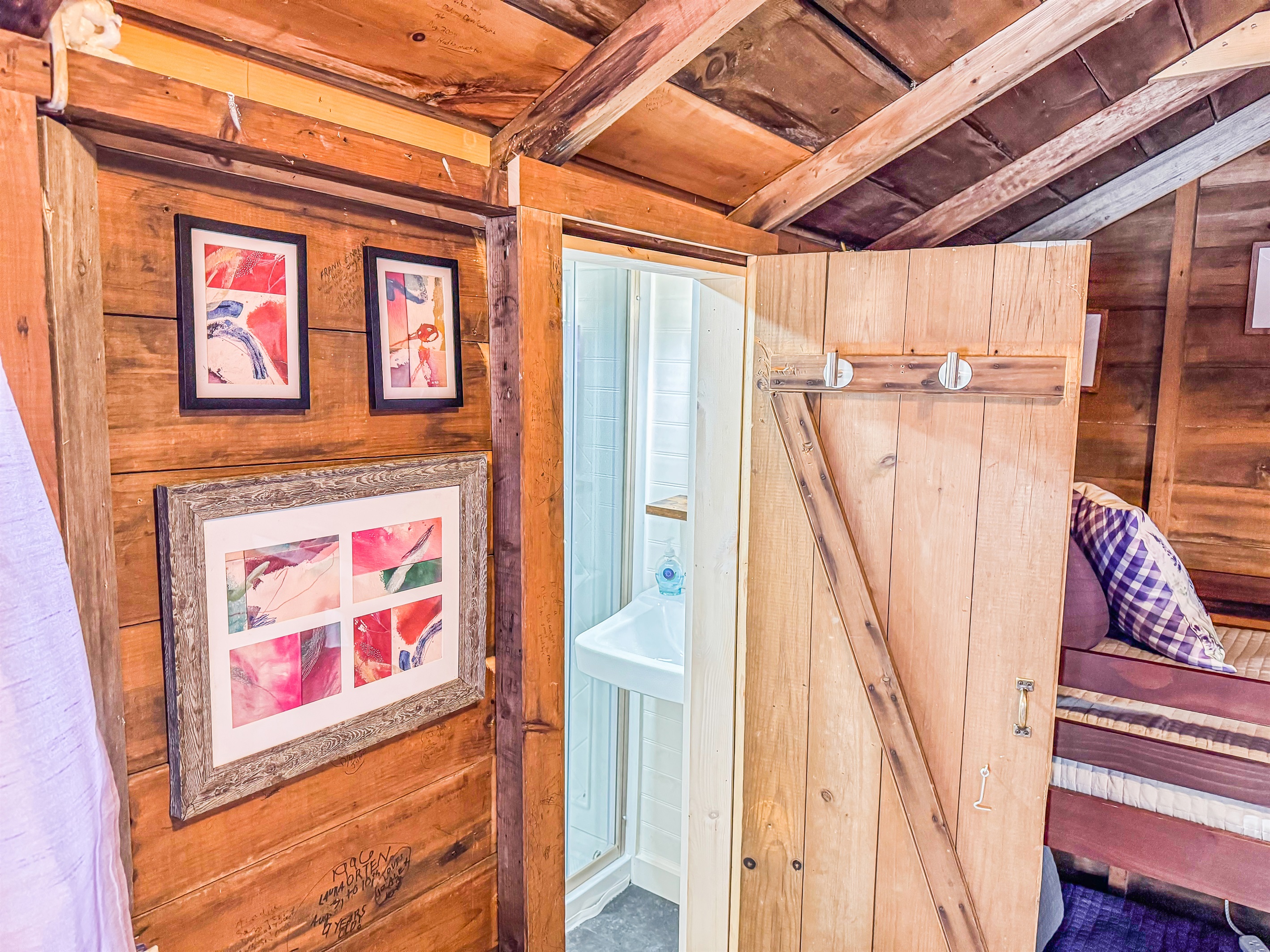 You have access to Lupine cabin, one of nine unique cabins at the Getogether Stays cabin resort. You have access to the waterfront of Toddy Pond. Kayaks are available for use, and stairs down to the water with a small beach to enjoy. Guests have access to the entire cabin and all shared amenities of the resort. Your cabin includes its own grill, fire pit, picnic table, and Adirondack chairs. Only the kayaks and the waterfront are shared. There are five different places to enjoy the waterfront between the nine cabins. Enjoy a morning paddle on the pond with our complimentary kayaks, gather around your fire pit in the evening, or relax on the dock with a good book. Free parking is available on the premises. Remember to be kind and considerate of your cabin neighbors who are also there to enjoy the serenity of nature. Quiet time is after 10 pm.The Space