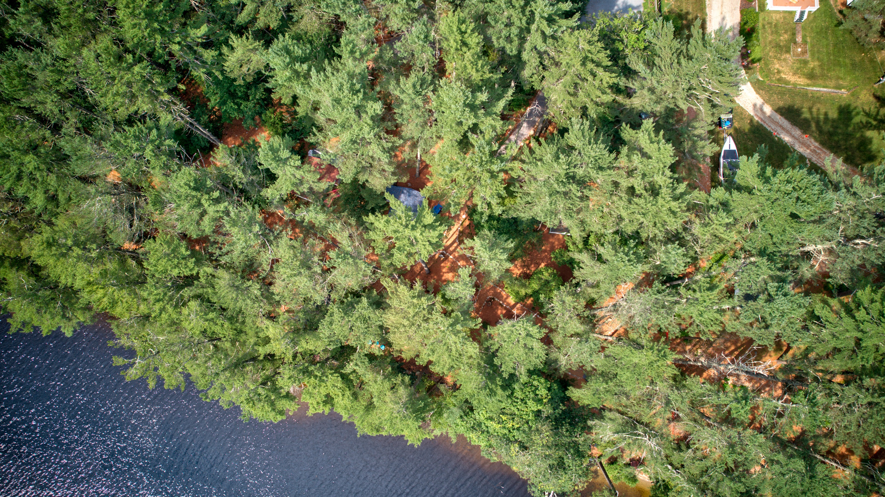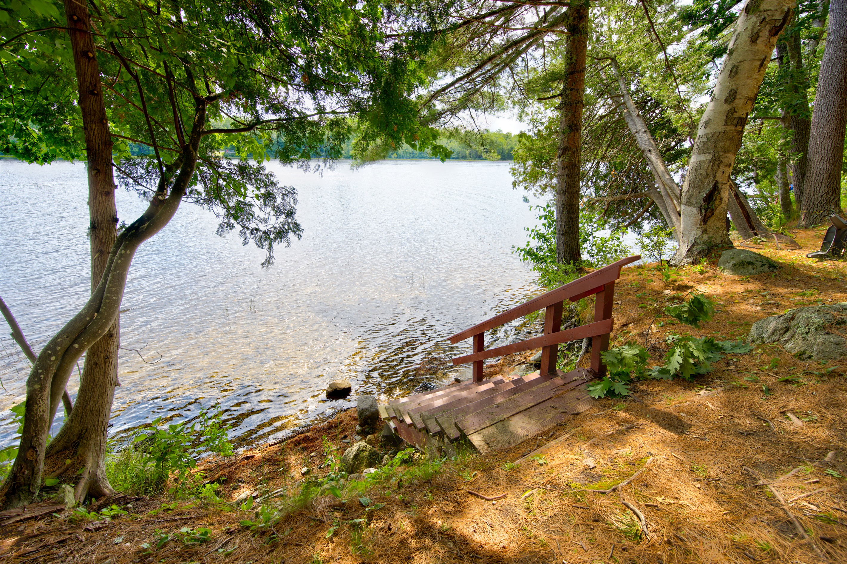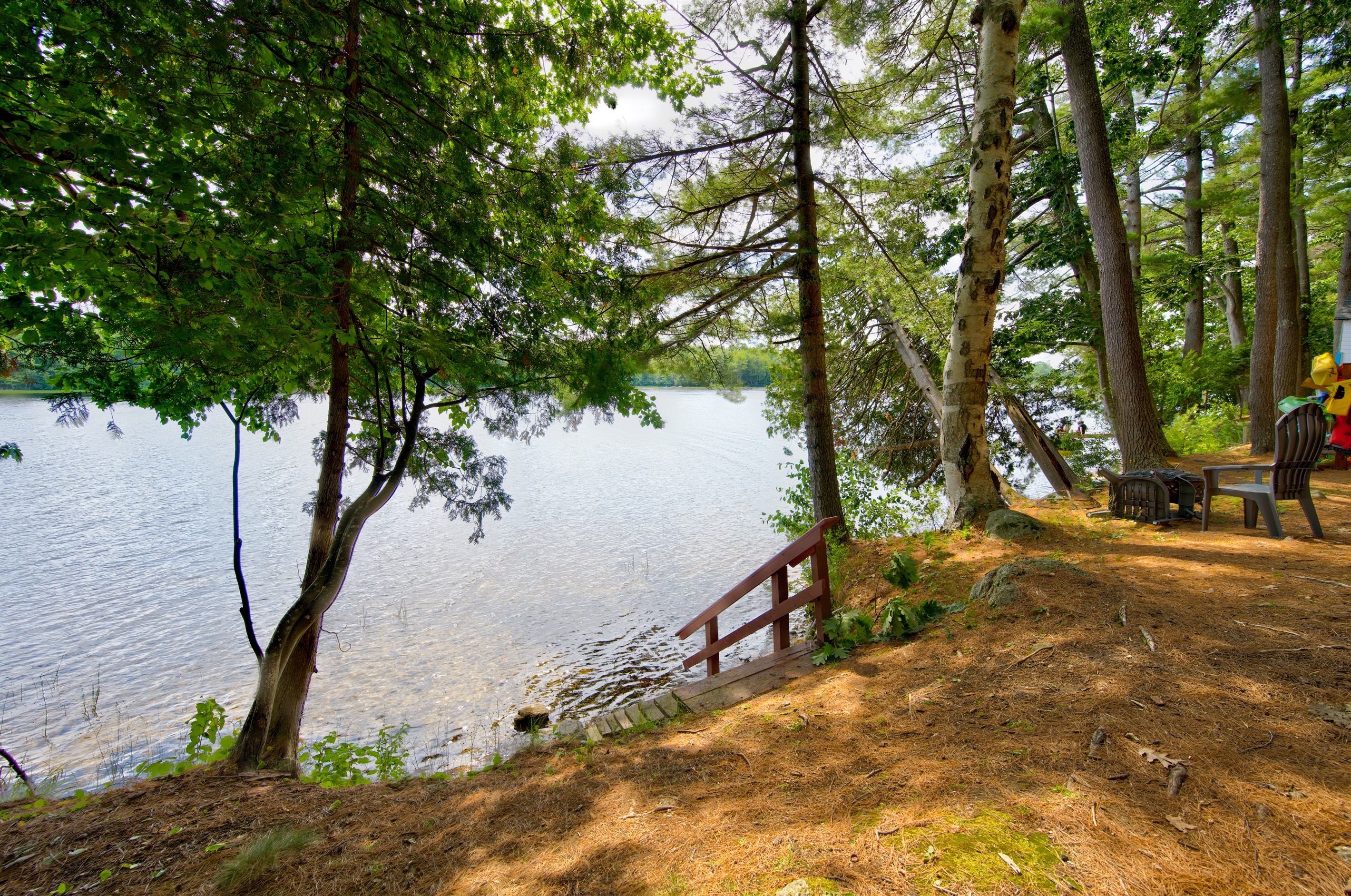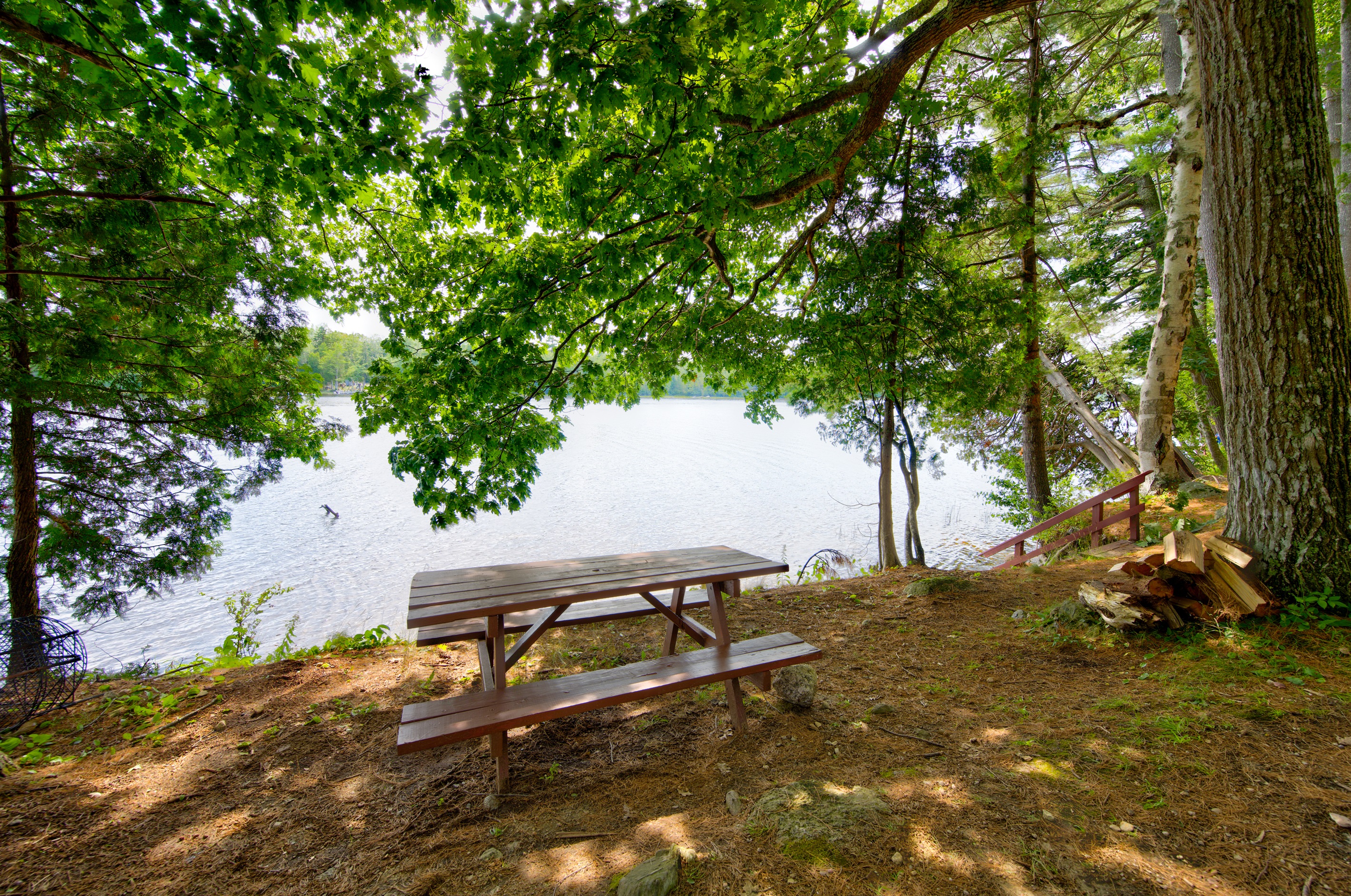 OUTDOOR LIVING: Direct lake access via steep path and staircase to the water, private & expansive yard, fire pit for outdoor campfires (bring your own firewood), a gas grill, 6ft picnic table, Adirondack chairs, beautiful towering pine trees, abundant open space, ample sun and shade