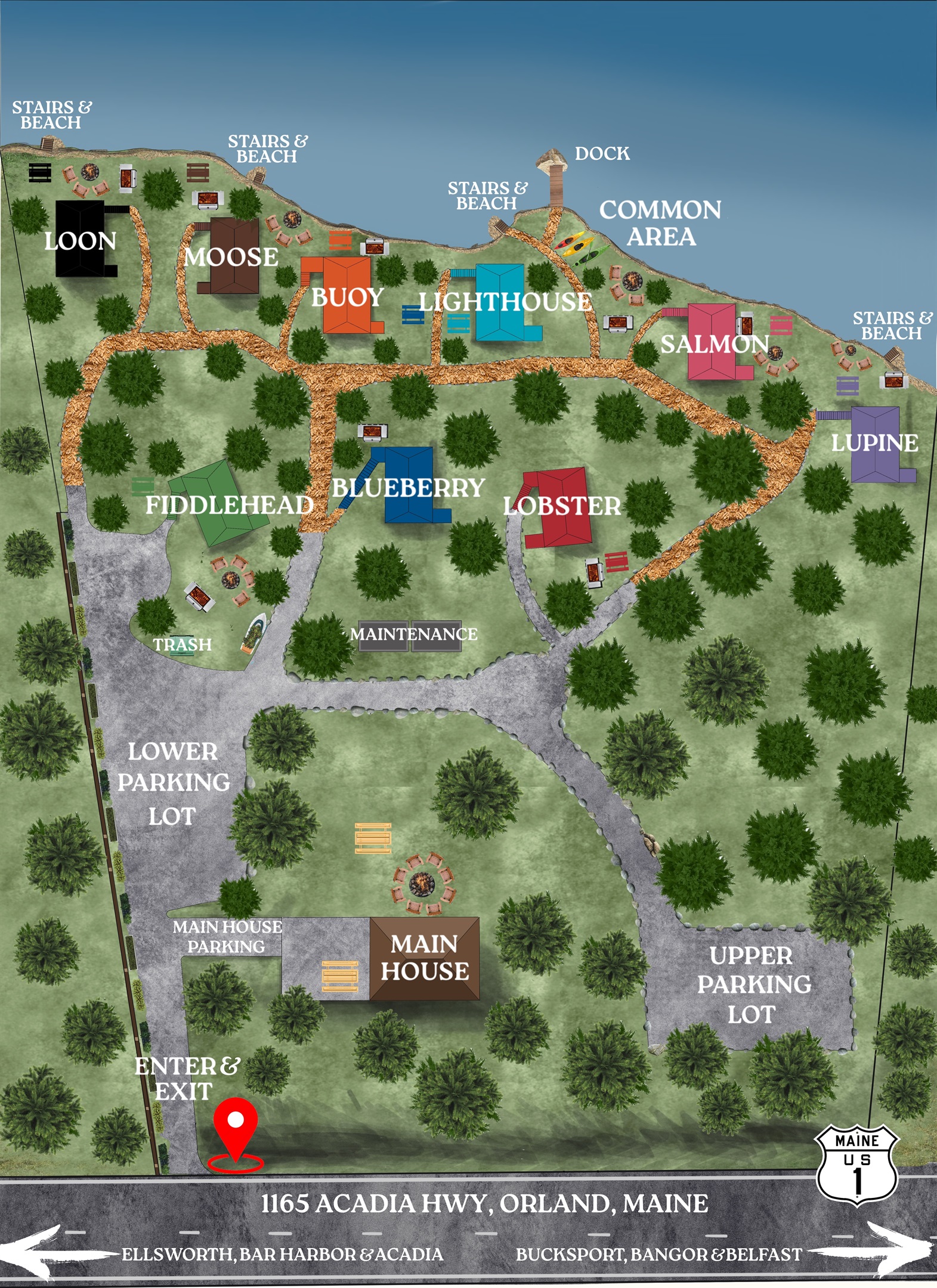 Moose cabin is located in Orland, Maine. Right on the shores of Toddy Pond, you’re also less than 20 minutes from many beautiful coastal Maine towns and around 45 minutes to Acadia National Park.Getting There